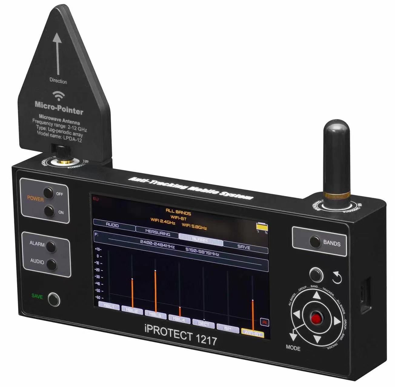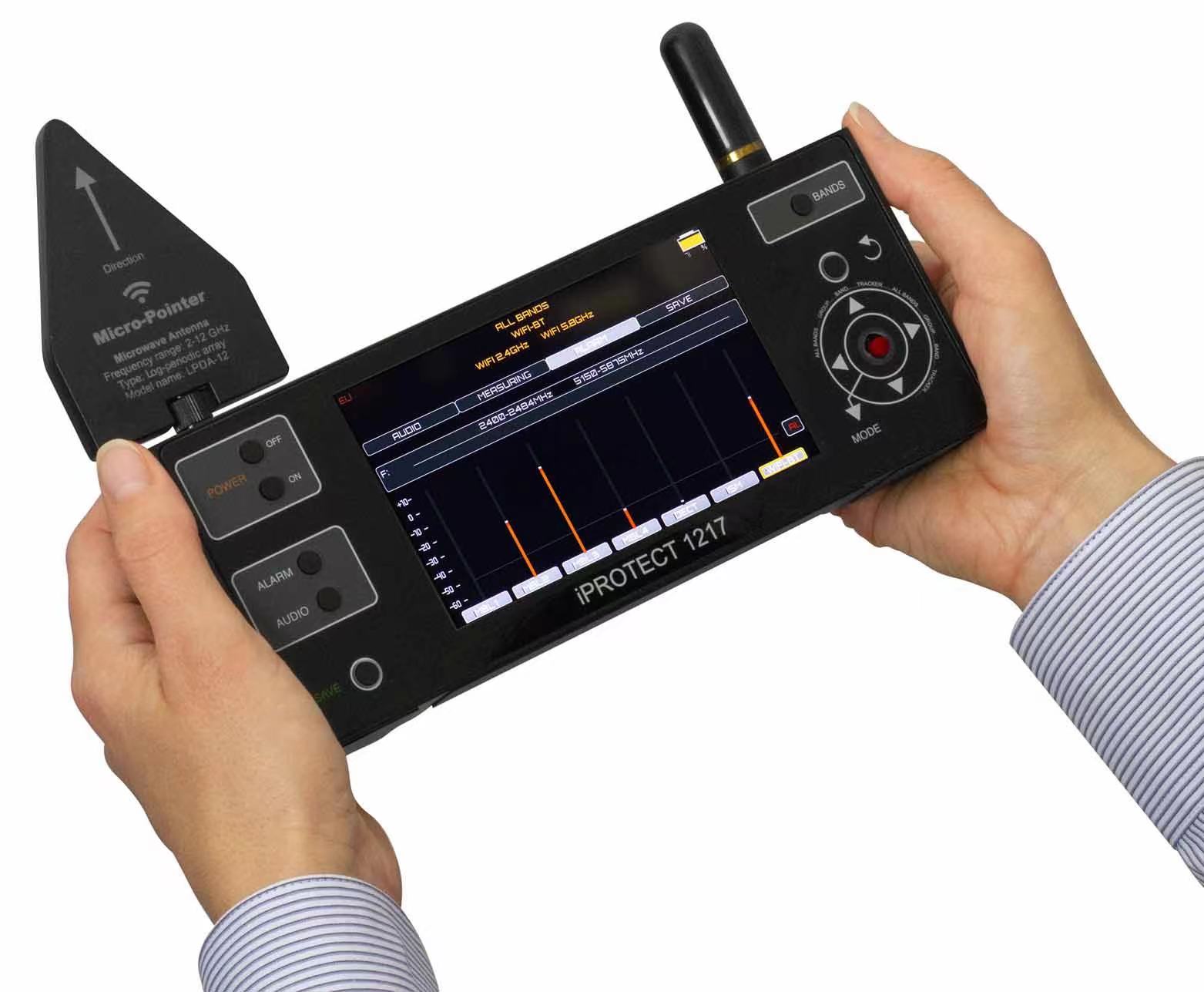 能够检测到所有类型的无线信号,包括Wi-Fi2.4千兆赫、蓝牙、Wi-Fi5千兆赫、DEIT、ISM434兆赫、ISM968兆赫和ISM9500兆赫