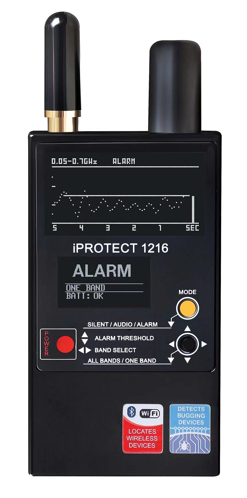 与传统的射频探测器相比,我的1216对3G、Wi-Fi和蓝牙窃听设备有更高的敏感度。这一优势是在专用于特定频率跨度电路中的额外射频路径的帮助下实现的。